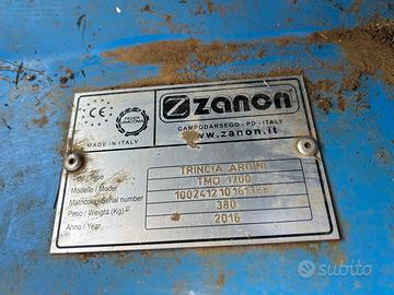 Trincia fossi marca Zanon a mazze modello TMO 1700- larghezza di lavoro 1,70m- peso 380 kg- anno 2016- CE- spostamento e inclinazione idraulica- in ottime condizioni- pronta all'uso