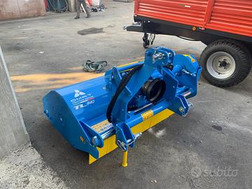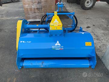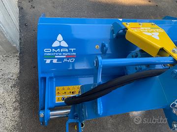 Trinciatrice trinciasarmenti trinciaerba OMAT TL - 140 con fiancata arrotondata, peso 570 kg, 10 martelli potenza necessaria 40-90 cv, larghezza lavoro 140 cm ingombro esterno 155 cm