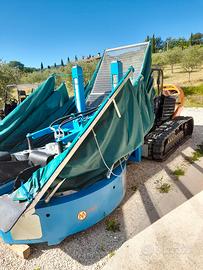 Macchina semovente radiocomandata multifunzione cingolata LV 1400 DOMINATOR costruttore italiano MDB con accessorio Macchina raccolta olive a vibrazione da fusto Matek MOR-001.