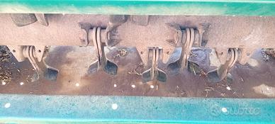 Vendo trincia Sovema mod. MEC-2 260 reversibile. La macchina è perfettamente funzionante ed in uso. Larghezza di lavoro m 2,56, larghezza di ingombro m 2,76. Il rotore di 25 cm di diametro è dotato di 24 paia di coltelli a doppio tagliente della lunghezza di 20 cm ed uno spessore di 1 cm disposti su 4 file di supporti. Il moltiplicatore di giri è reversibile (aziona il rotore in senso orario o antiorario). Sono state sostituite le 4 cinghie montate sulle pulegge a 4 gole e l'anello di tenuto albero scanalato-scatola ingranaggi. La macchina non vibra. I coltelli sono usurati del 5%. La macchina lavora trainata sulle slitte laterali di notevole spessore e può montare n. 24 mazze pesanti (diametro foro perno 25,5 mm) al posto dei coltelli. Giunto cardanico non fornito. Prezzo trattabile. Si gradisc contatto telefonico. Antonio 3477309638