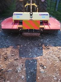Piatto rasaerba Zanon con larghezza di lavoro variabile da 1,7 m a 2,6 m tramite apertura idraulica.