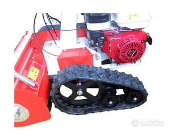 Il nostro Trinciaerba TEKNA Cingolato TTC è equipaggiato con cingoli in gomma di larghezza 160 mm con impronta a terra di ben 400 mm, per avere massima trazione e stabilità sia in forte pendenza che in situazioni di terreno fangoso e/o sabbioso.