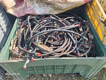 tubi in gomma raccordati nuovi per impianti idraulici varie misure e lunghezze portata 200 bar per escavatore e piattaforme idrauliche ed agricoltura. 6 casse circa 10 qli. 388 9003026