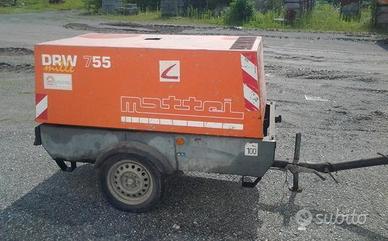 Motocompressore usato MATTEI modello DRW755 5000 lt pressione 7 bar carrellato motore VM diesel giunto motore/compressore rotto, fa fatica a partire in quanto è come se partisse già sotto carico anno 1999 ore 1257 matricola: C1197I
