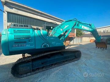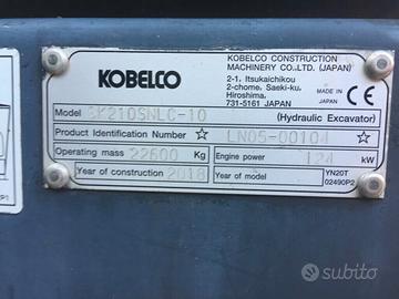 Escavatore Kobelco SK210SNLC-10: anno 2018 ore 4660 braccio boomerang da 5,65m braccio penetratore da 2,40m aria condizionata, radio USB telecamera laterale e posteriore valvole di sicurezza su cilindri braccio sollevamento e penetratore impianto martello e rotazione pinza proporzionali gancio su portattrezzi fari lavoro su braccio e cabina riparo pioggia su cabina guide cingoli supplementari