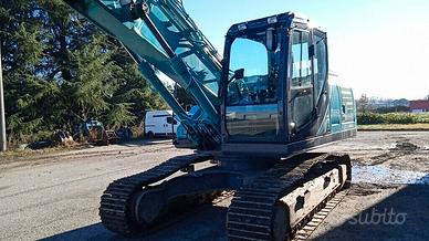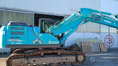 Escavatore Kobelco SK210SNLC-10: anno 2021 ore 3167 braccio TRIPLICE cabina con aria condizionata radio USB telecamera laterale e posteriore valvole sicurezza su cilindri braccio sollevamento e braccio penetratore impianto martello e rot. pinza proporzionali gancio su biella rovescio benna fari lavoro su braccio e cabina guide cingoli supplementari