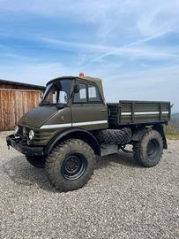 Unimog U 84 406 cabrio macchina operatrice anno 1985 km 34000, con sollevamento e presa di forza posteriore, cassone ribaltabile
