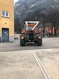 Gru dietrocabina bonfiglioli da 10q, cassone ribaltabile trilaterale, sollevatore agricolo posteriore con cascata di ingranaggi originale per presa di forza centrale.