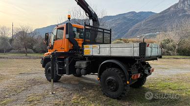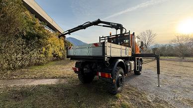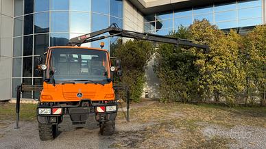 Mercedes Benz Unimog U 400 con gru Hiab 060 con 3 sfili idraulici Motore 6 cilindri da 230 cv Ridotte e super ridotte Cardano anteriore Attacchi idraulici anteriori e posteriori Km 80000 Anno 2010 Campana rimorchio Ribaltabile trilaterale Possibilità di visionarlo e provarlo senza impegno Immatricolazione macchina operatrice Per info