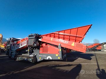 Vaglio FINLAY 873+, anno 2023, con sole 7 ore di lavoro. Macchina nuova di fabbrica, progettata per garantire alta produttività e precisione nella separazione dei materiali, ideale per cantieri di cava, frantumazione e riciclaggio. Equipaggiata con motore Stage V Deutz TCD 3.6L4 da 134 HP, assicura potenza costante e consumi ottimizzati, con peso operativo di 26.160 kg e capienza della tramoggia di 7 m³, perfetta per operazioni continuative. La superficie complessiva di vagliatura è di 10,95 m², con piano superiore e inferiore da 3,66 m x 1,5 m, per una resa efficiente anche sui materiali più fini. Matricola TRX00873EDGPB3858. Dettagli dei nastri e materiali fini Tines 55 mm Rete 20 mm Nastri Materiali fini - tappeto: larghezza 800 mm con nastro liscio Nastro intermedio: larghezza 800 mm con nastro a zig-zag Nastro sopravaglio: larghezza 1200 mm con nastro a zig-zag Macchina nuova, mai utilizzata operativamente, pronta per visione e consegna presso la nostra sede.