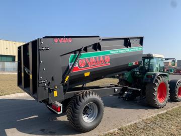 Vendo Dumper mono asse vaia MR 50, omologazione 5 ton, vasca con sponda idraulica con ganci per tenuta stagna, misure utili 4x2.26x1.35, frenatura idraulica con distributore del trattore, piede doppio effetto, assale 10 fori con Ruote 550 60 22.5.