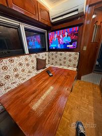 Van trasporto cavalli con living conpletamente restaurato 75 quintali patente c Speciale no tachigrafo Motore perfetto Consumi irrisori come pat b 4 cavalli 3 posti living Zona cavalli perfetta Impianto elettrico living nuovo Batterie nuove Piano induzione nuovo Tv 40 pollici nuova Scaldabagno elettrico nuovo Pompa acqua nuova