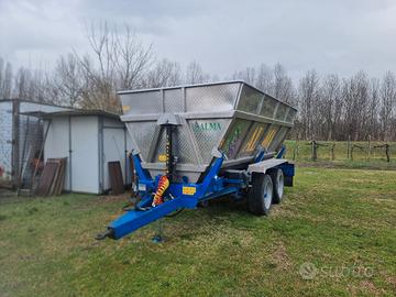 Vasca in acciaio inox ribaltabile bilaterale,frenatura ad aria 140ql con assale sterzante. Carica tranquillamente 120ql di uva vendemmiata a macchina .