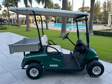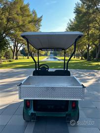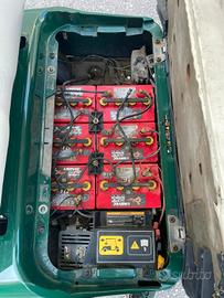 Veicolo elettrico a 2 posti usato ricondizionato, verde scuro, non omologato per la circolazione su strade pubbliche (non targato), colore verde con cassone posteriore porta merce, compatto e maneggevole, comoda e semplice da guidare, tra i veicoli elettrici più leggeri sul mercato. Nuovo modello dotato di tastiera con password di sicurezza per l'accensione.
