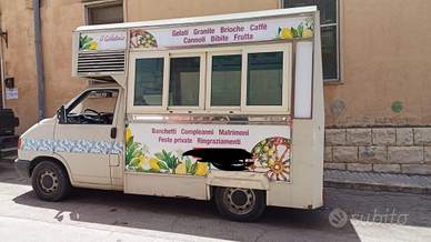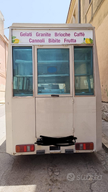 Veicolo munito di carrozzeria per vendita gelati, granite e bibite. Attrezzato a furgone aperto con 32 pozzetti per gelati e granite, frigo, lavabo, bancone, vetrinetta pensile. Motore diesel 2004 aspirato 5 cilindri. Pronto per il lavoro, tutto tagliandato.