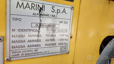 Vendo vibro finitrice stradale Marini modello MF 322.Anno 1999.Ore di lavoro 4.900.Banco a gas.Larghezza di stesa cm 180 / 320.Motore Perkins 4 cilindri 44 kw.Completa di targa e libretto.Tipo Bomag, Dynapac, Vogele.Prezzo netto i.e..Per info339 1952234339 5814237