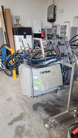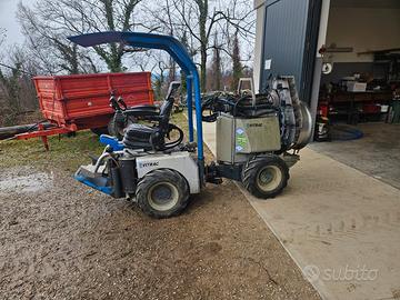 Piedini di sollevamento e rimozione Kit presa di forza idraulica. Irroratore con serbatoio da 200 litri gruppo ventola con convogliatore assiale a torretta. Comando elettrico di apertura/chiusura ugello 10 doppi ugelli reversibili. Regolazione manuale della pressione. Valvola di scarico totale. Vaschetta lavamani.