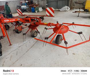 vendo voltafieno kuhn GF 502 DIGIDRIVE a quattro giranti richiudibile idraulicamente dotato di cardano tabelle segnaletiche catarifrangenti luci e frecce lavato e ingrassato ogni fine campagna sempre tenuto al coperto,no crepe su telaio e no saldature su bracci,come nuovo, funzionante al 100 %,usato pochissimo prezzo 5500 euro iva inclusa