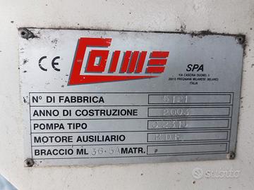 VOLVO FM12 380, anno 2003, km 148835, EURO3, con pompa COIME 36M braccio da 36 metri in 5 sezioni, tubo da 100 mm, ore 2878, in presa di forza