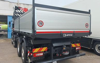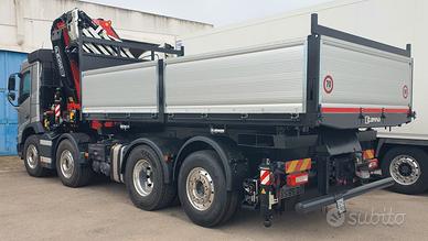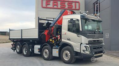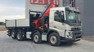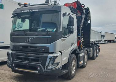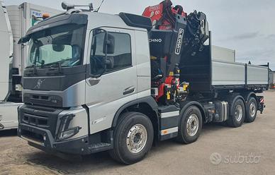 Volvo FMX540 8x2 nuovo da immatricolare, Euro 6, cambio automatico, retarder, computer di bordo, assale da 10 ton, Gru retro cabina NUOVA DI FABBRICA di marca FASSI mod. F1050R.2.9 HXP, sfili 9+6, collaudata PLE con cestello biposto rotante, verricello, posizione cestello in punta al jib, altezza massima 37 mt, stabilizzatori extra estensibili idraulicamente e rotanti, traversa supplementare idraulica, martinetti stabilizzatori lunghi, radio comando con display a colori, internet offcrane, scambiatore di calore, fari da lavoro, led, luci d'ingombro led stabilizzatori, luci d'ingombro led traversa posteriore, PSC platform stability control, cassone ribaltabile trilaterale NUOVO DI FABBRICA con sponde in alluminio TR30 altezza 0,80 mt, lunghezza 6 mt circa. Idoneo per pratica ZES SUD e industria 4.0.(predisposizione)