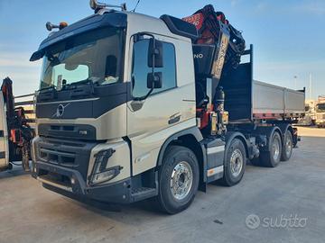 Volvo FMX540 8x2 nuovo da immatricolare, Euro 6, cambio automatico, retarder, computer di bordo, assale da 10 ton, Gru retro cabina NUOVA DI FABBRICA di marca FASSI mod. F905R.2.27 , sfili 7+6, collaudata PLE con cestello biposto rotante, verricello, posizione cestello in punta al jib, altezza massima 33 mt, stabilizzatori extra estensibili idraulicamente e rotanti, traversa supplementare idraulica, martinetti stabilizzatori lunghi, radio comando con display a colori, internet offcrane, scambiatore di calore, fari da lavoro, led, luci d'ingombro led stabilizzatori, luci d'ingombro led traversa posteriore, PSC platform stability control, cassone ribaltabile trilaterale NUOVO DI FABBRICA con sponde in alluminio TR30 altezza 0,80 mt, lunghezza 6 mt circa. Idoneo per pratica ZES SUD e industria 4.0.(predisposizione)