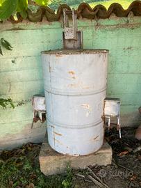 Peso peso zavorra per trattore con attacco a tre punti. Realizzato con un bidone di olio riempito di cemento, ha un telaio molto solito, pesa circa 550 kg.