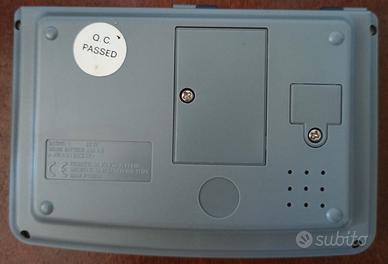 Agenda games vintage perfettamente funzionante con gioco. I due vani batteria sono completate privi di ossido. Giocatraduci del Mulino Bianco modello Sanyo TR117C in ottime condizioni e perfettamente funzionante. ( Come si può vedere dall immagine principale presenta graffi sul coperchio per il resto è perfettamente privo di graffi ) Vano batterie privo di ossido. Più di 6 foto non si possono aggiungere perciò ho scelto di mettere quella del vano batteria, comunque ho anche la foto del coperchio.