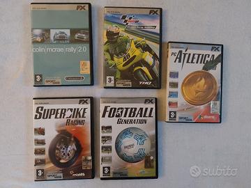 Videogiochi vintage per PC in buono stato di vario genere, Fifa, Nba, tennis, golf, moto gp, auto, ecc. Vendo al prezzo di € 2,00 al pezzo (non 1 solo pezzo).