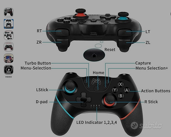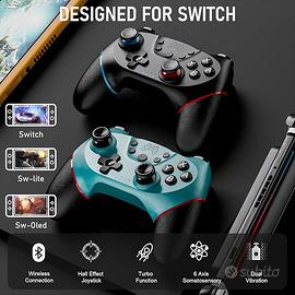 Vendo 2 controller nuovi mai usati wireless compatibili con Nintendo Switch (modello Pro), pari al nuovo. Compatibili con Nintendo Switch e Switch Lite (versione 9.1.0 e successive), oltre che con altri dispositivi come PC, Android e Xbox. Ideali per giochi come Zelda Breath of the Wild, Mario Kart 8 Deluxe, Super Mario Odyssey, Splatoon 2 e molti altri. La scelta è ricaduta su questi controller per l’ottimo rapporto qualità/prezzo e la versatilità multi-dispositivo. Caratteristiche principali: - Connessione Bluetooth stabile fino a 10 metri di distanza - Giroscopio a 6 assi per un controllo preciso e reattivo - Funzione Turbo regolabile (5 / 12 / 20 colpi al secondo) - Vibrazione con 3 livelli di intensità (debole, media, forte) - Batteria integrata da 600 mAh: fino a 8 ore di utilizzo - Tempo di ricarica: 2–3 ore (cavo incluso) - Supporto multiplayer fino a 4 giocatori - Design ergonomico con impugnatura antiscivolo, molto confortevole Nota: prodotto di terze parti, non originale Nintendo.