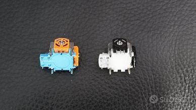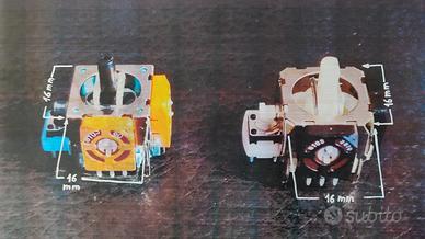 Coppia sensori joystick ricambio controller per Playstation. Naturalmente nuovi, potrebbero essere una soluzione al problema del "drift" (le levette registrano movimenti anche quando sono a riposo). I modelli sono due (entrambi B103), uguali per caratteristiche e forma, ma con colori differenti. Verranno spediti due ricambi di uguale colore a seconda della disponibilità al momento dell'ordine. Si prega di controllare bene tutte le misure, esterne e delle staffette di ancoraggio, indicate nelle foto. Il prezzo si riferisce alla coppia di ricambi. Verranno spediti 2 sensori dello stesso colore.