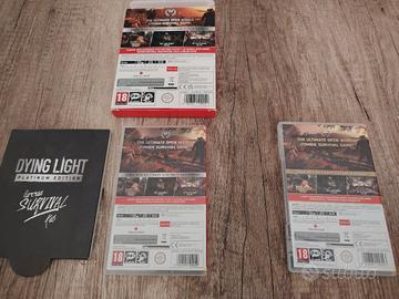 Vendo doppio Dying Light per Nintendo Switch. Il gioco per chi non lo conoscesse è un fantastico open world zombie survival, con ciclo giorno/notte. L'audio è in inglese ma il testo a schermo e i sottotitoli possono essere selezionati in italiano. Se giocato in wifi locale assieme ad un amico con un'altra Switch è SPETTACOLARE. Una versione è la platinum cartonata, l'altra è la definitive.