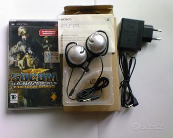 - gioco x vecchia PSP portatile "Socom U.S. Navy Seals fireteam bravo"+ cuffia con microfono (psp-270x) + alimentatore x rete fissa (ac adaptor psp-384, 5V 1500mA) tutto originale Sony e nuovissimo, a 20Euro.