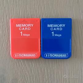 - 2 Memory Card - schede di memoria da 1 Mega per Play Station 1, colori rosso e blu.