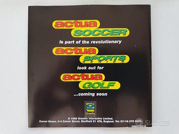 Actua Soccer (conosciuto anche come Ran Soccer e VR Soccer '96) | Gioco Game Videogioco parte della serie Actua Sports, simulazione 3D del gioco del calcio, rivoluzionaria per l'epoca in cui uscì; versione OEM per PC 486DX 33MHz o più veloci con MS-DOS 5 e successivi, funziona anche in Windows 95; la versione specifica per Windows è stata rilasciata nel 2009 | Sviluppato e pubblicato da Gremlin Interactive per varie piattaforme a partire dal 1995 (versione DOS).