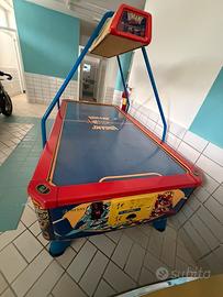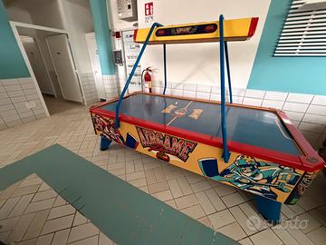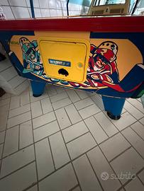 Air hokey con motore perfettamente funzionante, non giocabile da cambiare pannello sotto piastra che perde aria, vendo o scambio con gioco con gettoniera