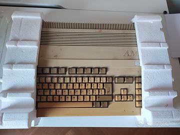 Vendo Amiga 500 con scatola originale, completa di alimentatore, mouse originale, cavi e manuali. Lievemente scolorita dall'età, ma un esperto la potrà sicuramente riportare alla vecchia colorazione.