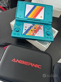 Vendo Anbernic Rg DS MAI utilizzata con custodia orgiginale, colore blu turchese Schermi: Doppio schermo IPS da 4 pollici, laminazione completa OCA, risoluzione 640x480 pixel, touch screen sul pannello inferiore. Processore: Rockchip RK3568 Quad-core 64-bit Cortex-A55, fino a 2.0GHz. GPU: ARM G52 2EE. RAM: 3GB LPDDR4. Memoria Interna: 32GB (disponibili versioni con schede SD incluse da 128GB o 256GB). Espansione: Supporto MicroSD fino a 2TB. Batteria: 4000 mAh, autonomia dichiarata di 6 ore (4 ore stimate nell'uso reale). Connettività: Wi-Fi 2.4/5G, Bluetooth 4.2. Porte: USB Type-C, jack audio da 3.5mm. Peso: 321g. Altro: Giroscopio a 6 assi, motori di vibrazione, supporto ai controller Bluetooth, Hall Magnetic Switch (sleep alla chiusura) Emulazione: Eccellente per Nintendo DS e titoli fino a PS1/N64, gestisce parzialmente Dreamcast e 3DS. Design: Clamshell (conchiglia) Software: Gira su Android 14, il che permette l'uso di varie app e emulatori. Pulsanti: Dotato di joysticks con tecnologia Hall effect per prevenire il drifting