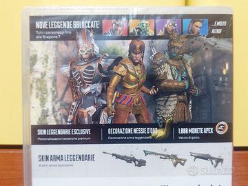 Apex Legends Edizione Champion per Nintendo Switch, edizione italiana, in condizione nuovo mai aperto / sigillato. Contiene un codice download da riscattare per ottenere il gioco e le espansioni incluse.