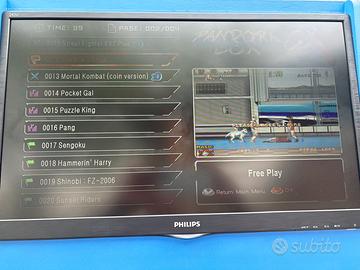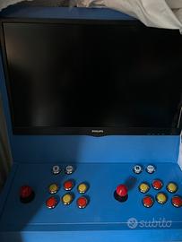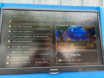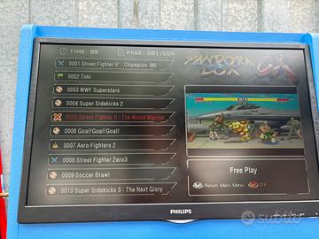 Videogioco sala giochi Arcade bar top 90, cabinato retropie con doppia console è pulsanti retroilluminati, Pandora box con tantissimi giochi anni 90 e 80, alcuni anche più vecchi, artigianale fatto con legno Mdf da 19mm, Monitor da 24 pollici marca Philips, subito pronto per il gioco, non è adatto a curiosi, ma appassionati del genere, bellissimi giochi come quelli riportati in foto, vintage,