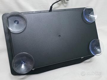 Teste delle viti affossate nel plexiglass, in modo da non risultare fastidiose o pericolose, 4 ventose per fissare stabilmente la struttura al tavolo, cavi disposti ordinatamente all'interno del case.
