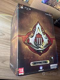 Vendo videogioco Assassin’s Creed 3 Collector’s Edition per Playstation 3 incluso di tutto ciò che si vede in immagine (libro, lettera, action figure, disco di gioco, steelbox…), ottime condizioni.
