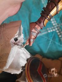 Segnalo che la statua per stare in piedi ha bisogno di essere supportata da qualcosa a lato come mostrato in foto perchè la colla originale sotto il piede vicino al perno ha ceduto, qualora lo si volesse è facilmente riparabile con colla o pasta ma personalmente tenendola esposta con supporto laterale non ne ho avuto necessità.