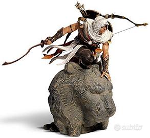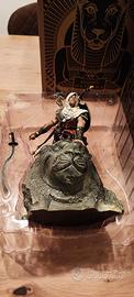 Statuetta di Bayek da 25 cm in piedi sulla statua di Sekhmet, la dea leonessa