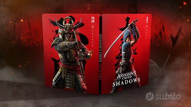 ASSASSIN'S CREED SHADOWS COLLECTOR'S EDITION (nuova) per PS5 CONTENUTO DIGITALE Bonus prenotazione*, con la prossima espansione e una missione bonus all'uscita del gioco CONTENUTO DIGITALE Gioco base Contenuti digitali aggiuntivi: Pacchetto duplice Sekiryū: set attrezzatura e armi per Naoe e Yasuke, la Bestia Sekiryū e l'oggettino Dente del drago Pacchetto rifugio Sekiryū: quattro ornamenti unici per personalizzare il rifugio per la tua lega di shinobi 5 punti maestria OGGETTI FISICI DA COLLEZIONE DI ALTA QUALITÀ Statuetta dei due personaggi Naoe e Yasuke Custodia Steelbook® esclusiva Artbook da collezione (76 pagine) Tsuba della katana di Naoe a grandezza naturale Mappa del mondo Pergamena del Credo Due litografie di sumi-e