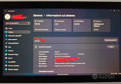 Asus Rog Ally Z1 extreme: -16Gb di ram -Amd Radeon Graphics 4Gb (Scheda grafica) -1Tb di archiviazione -Processore AMD Z1 extreme Molto ben tenuta e poco usata, venduta con scatola oginale e tutte le sue componenti e alimentatore. Accessori: -Docking station iVANKY, 3 porte USB, 1 HDMI, 1 porta di rete e l'alimentazione USB-C -Tastierino Bluetooth con ricarica micro-usb -Mouse TrustGX Bluetooth -custodia per Rog Ally Tutti gli accessori sono stati usati sono in buone/ottime condizioni, potrebbero presentare qualche picccolo graffio. La linguetta metallica sul retro l'ho messa io ed è attaccata con il biadesivo. Possibilitá di scambio a mano zona Udine, Tavagnacco e Faedis.