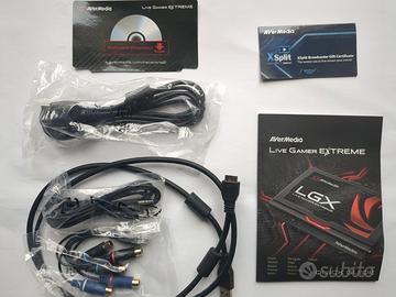 Scheda di acquisizione Completa di tutto quanto presente in foto Dispositivo USB 3.0 che cattura e trasmette i tuoi film o gameplay HD in qualità FULL HD. Attraverso l'HDMI garantisce un'esperienza di gioco eccellente grazie all'ingresso e all'uscita HDMI Il pulsante di registrazione diretta incorporato nel prodotto semplifica la registrazione e lo streaming in un solo clic. Consente l'accesso diretto alle piattaforme di streaming più popolari come YouTube Live, Twitch.tv e UstreamIt, e di personalizzare i parametri RTMP. SPECIFICHE: • Interface:USB 3.0 • Video Input:HDMI / Component • Video Output (Pass-Through):HDMI / Component • Audio Input:HDMI / RCA L-R / 3 Pole 3.5 mm jack * 2 • Audio Output (Pass-Through):HDMI / RCA L-R • Max Pass-Through Resolutions:1080p60 • Max Record Resolutions:1080p60 • Supported Resolutions (Video input):1080p, 1080i, 720p, 576p, 576i, 480p, 480i • Record Format:MPEG 4 (H.264+AAC)