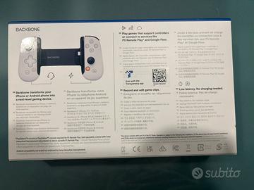 Backbone One – Perfetto per gaming mobile Vendo Backbone One nuova mai utilizzata, ideale per trasformare il telefono in una vera console portatile. Compatibile con le principali piattaforme di gioco e perfetto per sessioni lunghe grazie alla presa comoda. • Condizioni: Nuova, mai utilizzata • Compatibilità: Smartphone con presa usb-c • Funzioni: Pulsanti reattivi, stick analogici, tasti dorsali, app dedicata • Ideale per: Gaming mobile, cloud gaming, viaggi, utilizzo quotidiano • Design: Leggero, ergonomico e facile da montare Perfetto per chi vuole migliorare l’esperienza di gioco sul telefono con un controller di qualità