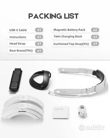 Vendo cinturino ergonomico BINBOK VR T3S Plus con 2 batterie magnetiche hot-swap, compatibile con Meta Quest 3 e 3s, con annessa base di ricaricare per le batterie in modo da avere un autonomia infinita. Contenuto: - 2 Batterie magnetiche intercambiabile (8000 mAh) ricaricabili sia con base che con usb c, garantiscono fino a due ore di gioco extra e sostituibili facilmente anche durante l’utilizzo -Supporto per testa comfort con bracci laterali regolabili (fino a 180°) Estensione regolabile tramite manopola posteriore -Cinghia in memory foam ad alta densità -Base di ricarica doppia magnetica cavo usb c to usb c 📦 Condizioni: Nuovo mai usato Ho aggiunto qualche foto dal sito ufficiale per fare capire meglio di che si tratta.