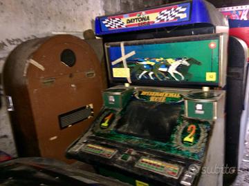 Lotto Tutto 2.500 euro. Blocco dì cui. Sale giochi gioco corse pista 2 : macchine SEGA Daytona USA 41 2 : gioco corsa cavalli 1 : black jack con 5 postazioni gioco carte 1 : slot slot-machine. 1 : flipper bingo in legno vintage croce d'oro. 1 : cabinato STARDUST 1 : jukebox video Yuke Box V. PULEO Sala giochi cabinato cabinet arcade console videogiochi