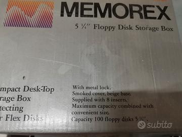 Box floppy 5.25 5 1/4 memorex nuovo pc vintage Può contenere 100 floppy Nuovo mai usato con chiave